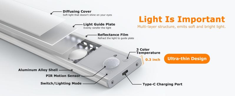 - 【15.9INCH Daylight & Motion Sensor Indoor Lights】— In motion mode, the closet lights motion sensored will turn on when movement detected within a 10ft range. — In night mode, it will auto-turn on when detects movement in low-light or dark environments. — Meanwhile, it can also be set to always-on mode when needed. They are ideal for closet lighting, under-counter light fixtures, wireless display lighting, etc.