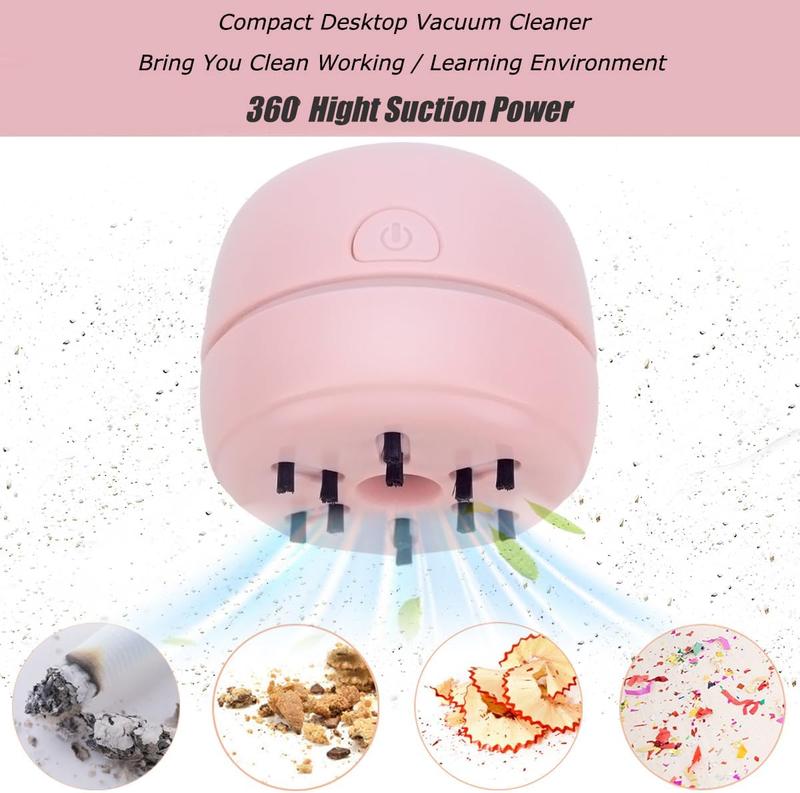 Powerful Suction: The mini vacuum cleaner has a powerful motor that provides strong suction, allowing you to easily clean dust, crumbs, eraser crumbs, pet hair and other small debris from various surfaces.