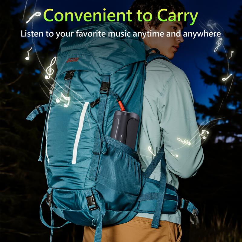 [Tough & Weather-Resistant] This speaker is built to withstand rough use and harsh weather. It has a durable structure and an IPX5 rating that protects against water splashes and spills. It's an ideal pick for outdoor activities, working perfectly at parties by the pool on the beach during camping or hiking and more.